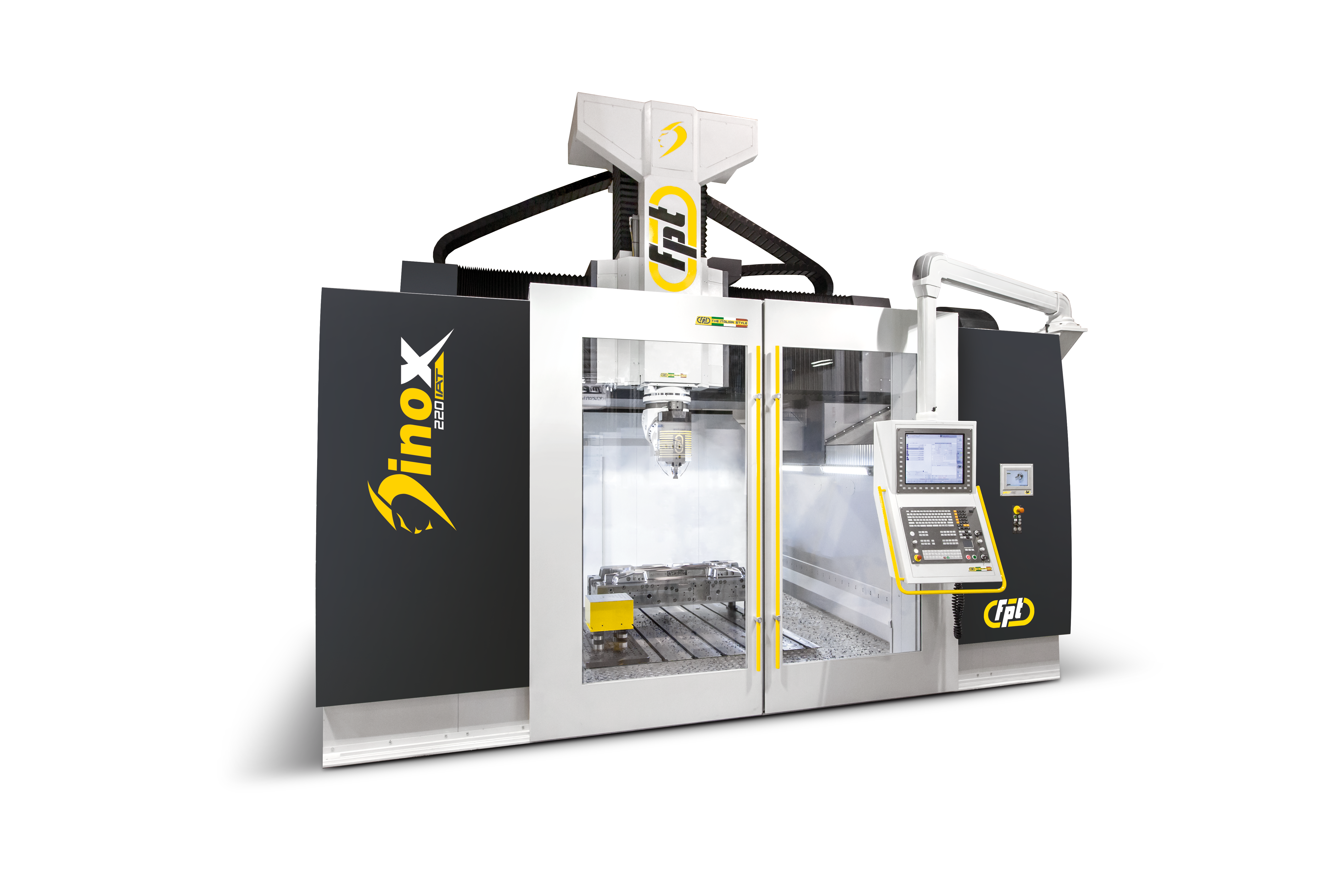 The FPT Dinox 220 IAT is a high-performance vertical milling machine with a gantry-type moving crossbeam design, engineered for both heavy-duty roughing and high-speed finishing. Its structure, optimized through advanced FEM analysis, ensures maximum rigidity and vibration damping, while the integrated IAT – Intelligent Active Thermal control system guarantees precision by compensating for temperature variations during machining. Ideal For |